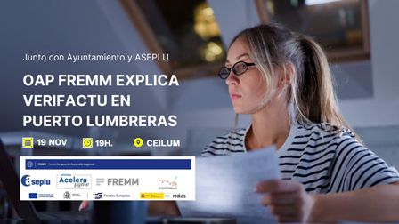 La Oficina Acelera Pyme (OAP), adscrita a la Federación Regional de Empresarios del Metal de Murcia (FREMM) y abierta a todas las empresas y autónomos de la Región de Murcia, explicará la nueva facturación electrónica y el sistema Verifactu a los empresarios de Puerto Lumbreras.